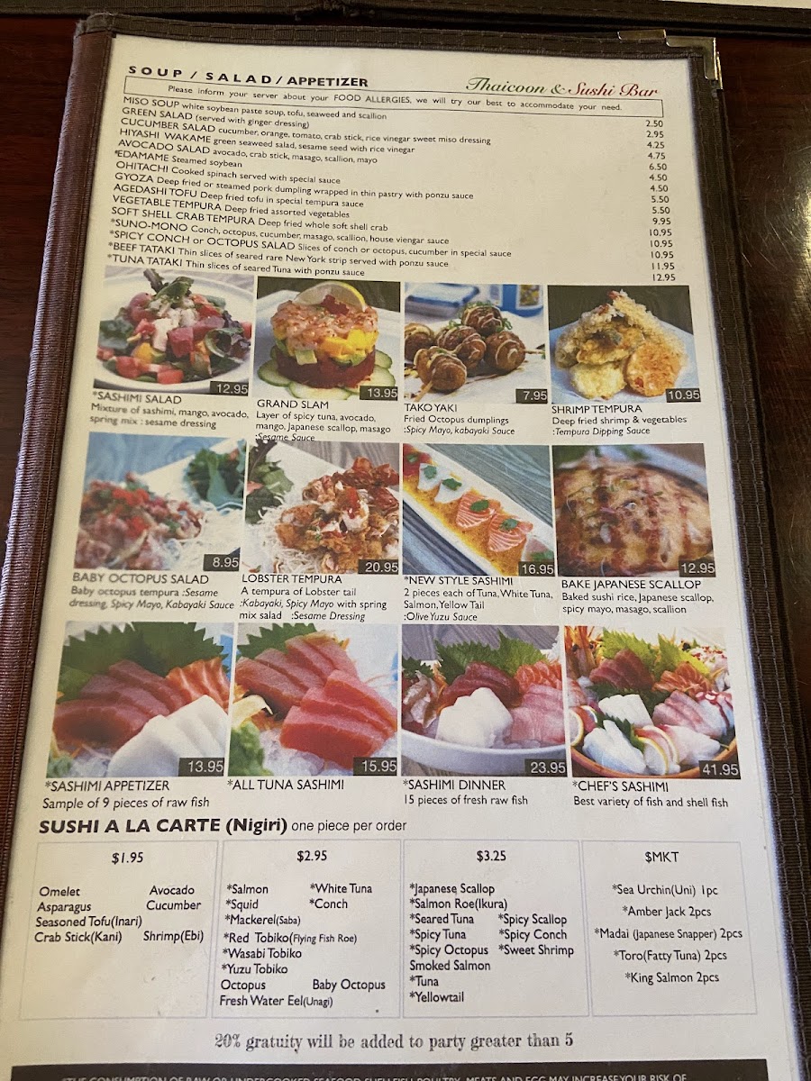 Welcome to Thaicoon & Sushi Bar, a culinary gem nestled in Marietta, Georgia. This vibrant restaurant seamlessly marries the bold flavors of Thai cuisine with the delicate artistry of sushi, creating a menu that caters to diverse palates.